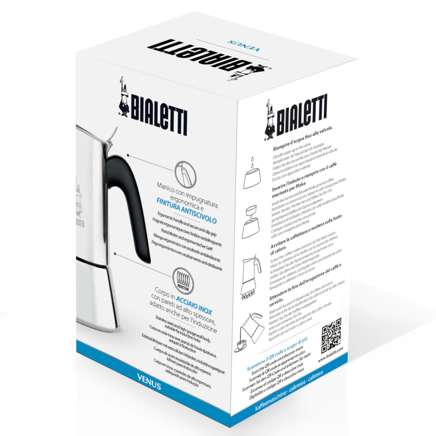 Thanks to its 18/10 stainless steel construction, the Venus is dishwasher safe, unlike Bialetti’s aluminum pots and the polished exterior maintains its luster even after repeated uses. For easy serving, the textured handle has also been updated with rounded sides and a more ergonomic angle for holding.