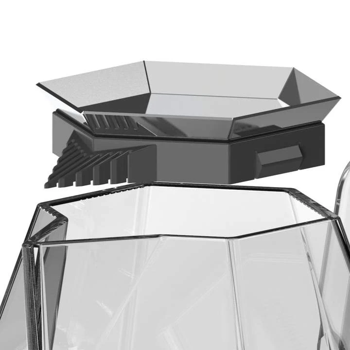 The unique gem shape design of the Gem Series Glass Server provides balanced oxygenation, while the polygonal inner base eliminates swirling and the thick rim and precision spout offer added control and result in improved aroma. Also featured is a sealed rim for heat retention and easy carrying.